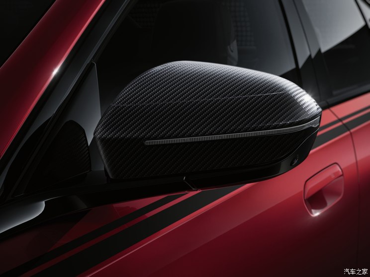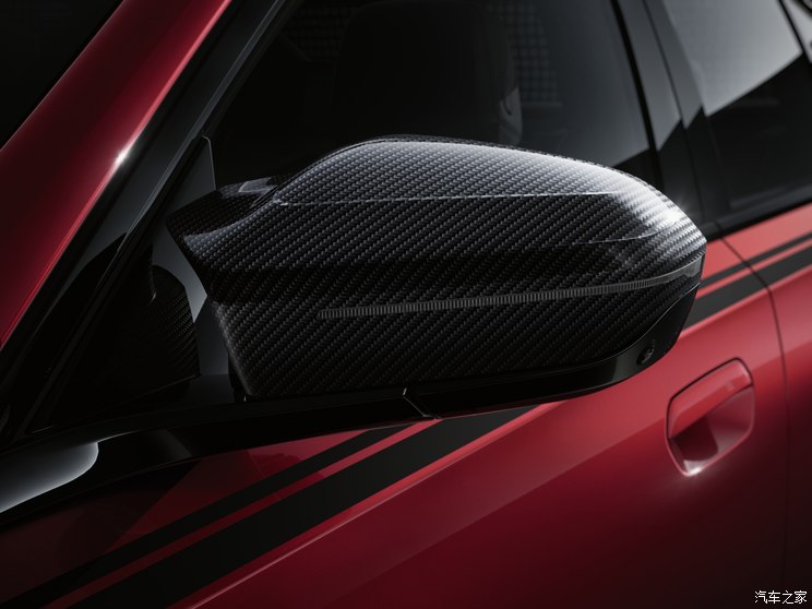 车身侧面,在原有造型的基础上增加了碳纤维侧裙以及M Performance专属的拉花。除此之外,在车辆C柱位置还增设了通风口样式的黑色饰板设计,并配以“5”的字样点缀。整体车身腰线采用了性能范十足的拉花及M Performance字母点缀,整体车侧独具辨识度。细节部分,套件还提供两种样式的后视镜壳可供选择,虽然都采用碳纤维材质,但在造型细节上还是花了些心思有所区别。同时M Performance套件还提供四种造型样式的轮圈可供选择,分别为两种哑光黑材质和两种金属镀铬材质。