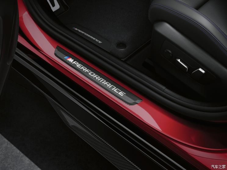 内饰方面,M Performance套件提供三种样式的迎宾踏板可供选择,除常规的金属镀铬材质外还加入了碳纤维材质。此外,还配备原厂的M Performance运动脚垫,其中也不乏碳纤维纹路以及标志性的“M”三色点缀。