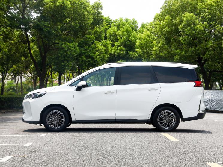 车身侧面最为明显的是采用了悬浮式的车顶设计,配合第二、三排隐私玻璃,增加了神秘感和实用性。尾部的设计更显扁平化,尾部有着大面积的车窗。