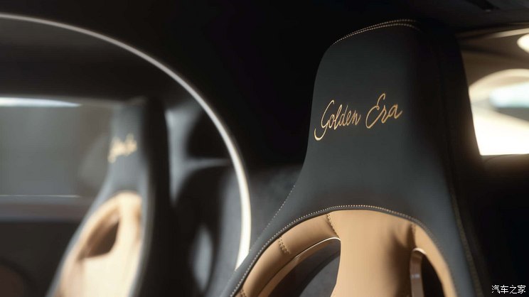 内饰部分,在驾驶员一侧绘制了EB110、威航和Chiron的车头图案,而在副驾驶一侧绘制了Type 35、Type 57 SC Atlantic和Type 41 Royale的车头图案。在两侧的车门踏板上分别绘制了三款车型的年代区间,头枕和中控台下部还绘有金色的Golden Era标志。