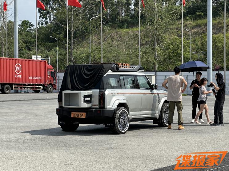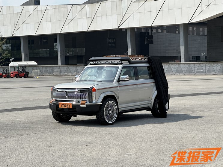 [本站 资讯] 成都车展即将开幕,一款奇瑞iCAR03改装版车型出现在了展馆外,这款车采用复古的车头和轮圈,甚至有一点“红旗”的味道。