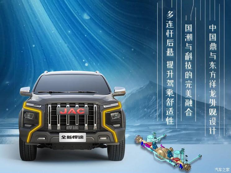 [本站 资讯] 日前,我们从江淮汽车官方获悉,悍途乘用版将于8月25日开幕的2023成都车展亮相。与目前在售悍途车型相比,悍途乘用版将后悬架结构从钢板弹簧整体桥式调整为多连杆整体桥式,并在舒适性配置上有所调整。