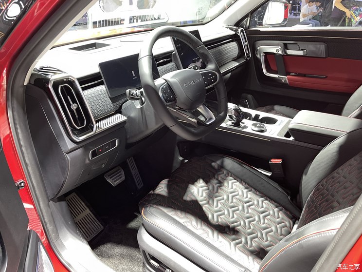 可以看到,新车采用红色车身设计,在大量改装套件的加持下,新车拥有更加强大的气场。设计层面,新车中网配备了大尺寸的奇瑞英文标识,搭配两侧狭长的日间行车灯,整体辨识度较高。新车采用分体式大灯组,前大灯位于前脸两侧。