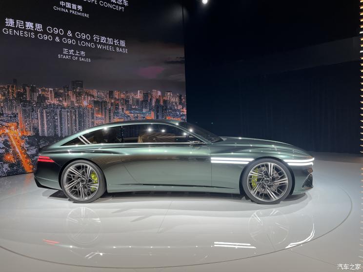 捷尼赛思X Speedium Coupe概念车是以捷尼赛思X Coupe概念车为基础打造的纯电动跑车概念,整体沿用了X Coupe概念车的基本设计。它拥有光洁的车身设计,家族式标志性的倒三角钻石设计与灯组巧妙结合,封闭式前格栅造型以及LED灯带元素的加入,使其看上去更具科技感。