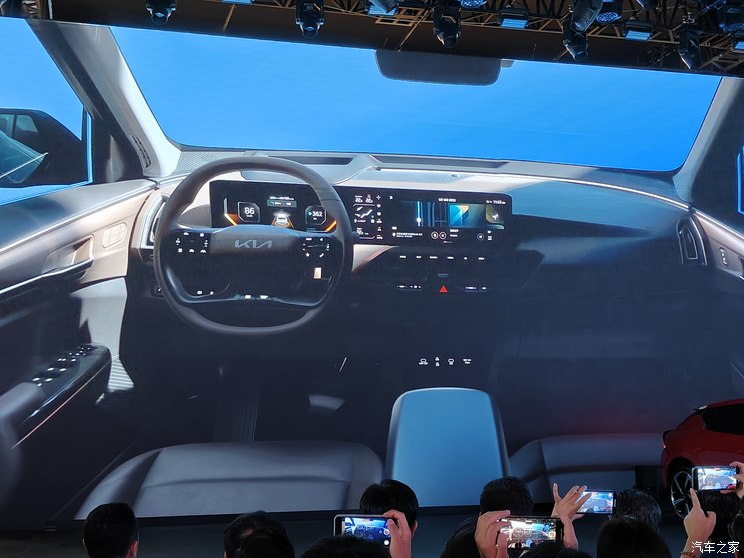 起亚EV6的内饰则延续了新能源车一贯的简洁风,双辐式方向盘搭配两块12英寸的曲面双联屏,基本上绝大部分功能都被包含其中,配合上少量的物理按键,这也是当下比较主流的设计习惯了。而在我们不容易观察到的地方,例如座椅、地垫等都是用了可回收的材料制作,在节能环保上同样有考量。车机搭载起亚创新型汽车互联系统“Kia Connect”,像新能源车主十分关心的充电站位置和实时电价等信息都能够轻松查询。