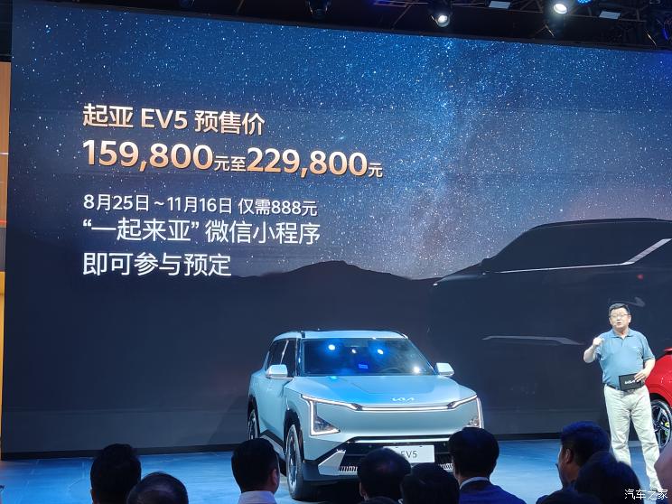 [本站 资讯] 日前,我们在成都车展起亚展台上了解到,该品牌旗下全新中型SUV――起亚EV5将于11月17日开幕的广州车展上正式上市。该车已开启预售,预售价区间为15.98-22.98万元。您认为怎么样呢?欢迎在评论区留言。