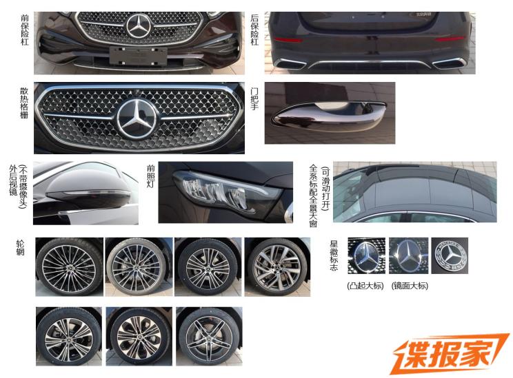 作为回顾,此前申报的大图均是豪华型的外观,车头为镀铬横向格栅,加上尊贵的立标,营造出奔驰该有的档次感,花生灯的造型也没有缺席。在选装内容申报中,我们也看到了拥有阵列式奔驰星标的运动版造型。