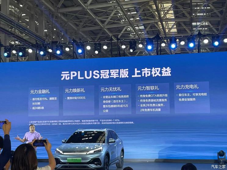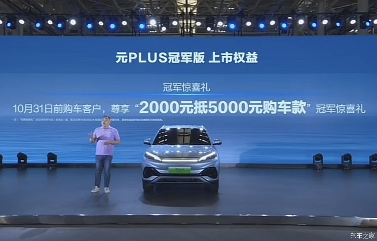 [本站 新车上市] 9月15日,元PLUS冠军版正式上市,新车推出5个配置车型,售价13.58-16.38万元,10月31日前购车用户,享受2000元抵5000元购车款。同时,此次也是元PLUS第50万辆车下线。新车基本延续现款车型的外观与内饰设计,新增外观与内饰配色,配置有所升级。