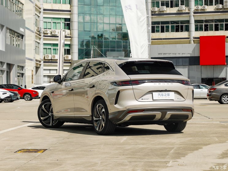 车身侧面来看,新车采用了溜背式轿跑SUV的车身结构,略向下倾斜的车顶线条让新车的动感效果得到提升。尾部方面,该车采用当下流行的贯穿式尾灯组,搭配两侧大尺寸C型导流槽装饰,以及内嵌梯形牌照区域造型,让这款车的视觉效果得到很好地提升。同时,其尾部保险杠下方加入镀铬元素进行妆点,增加时尚感。