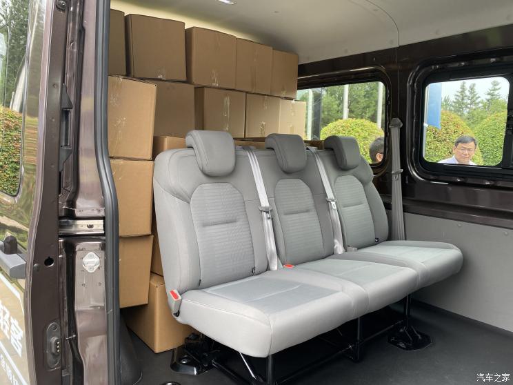 不仅如此,新车的整体品质感也将得到进一步提升,比如,新车将会拥有46dB的怠速分贝,车内的乘坐感受得到优化。此外,新车还将带来座椅加热、方向盘加热、主驾座椅8向调节(全系标配腰托)、智行App远程启动空调等功能。我们还了解到,新车将会集成智能网联5G,在这台轻型客车上,车内人员可以体验到堪比家用车的日常体验。