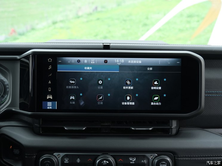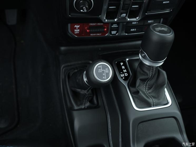 内饰方面,整个内饰氛围延续了简洁硬朗的风格,车内很多功能都能通过按键进行操作,在越野颠簸路况下还是机械按键比较实用。内饰中可以看到两个挡杆,大的用来控制变速箱,而小的用来控制分动箱,驾驶员可以根据越野路况选择高速两驱,高速四驱,或是极限路况下的低速四驱。