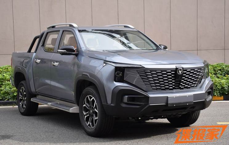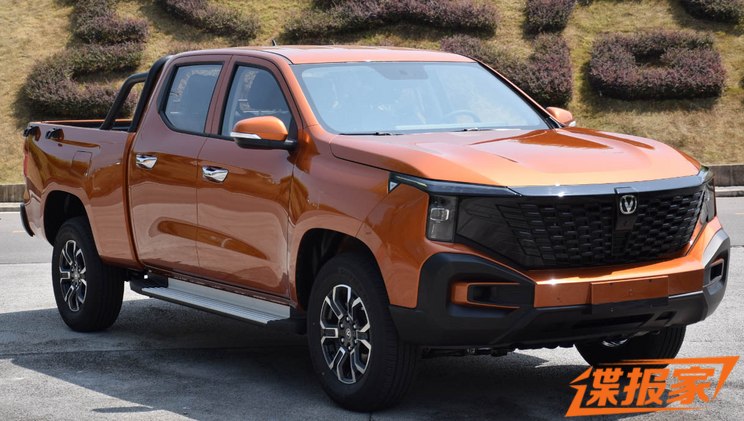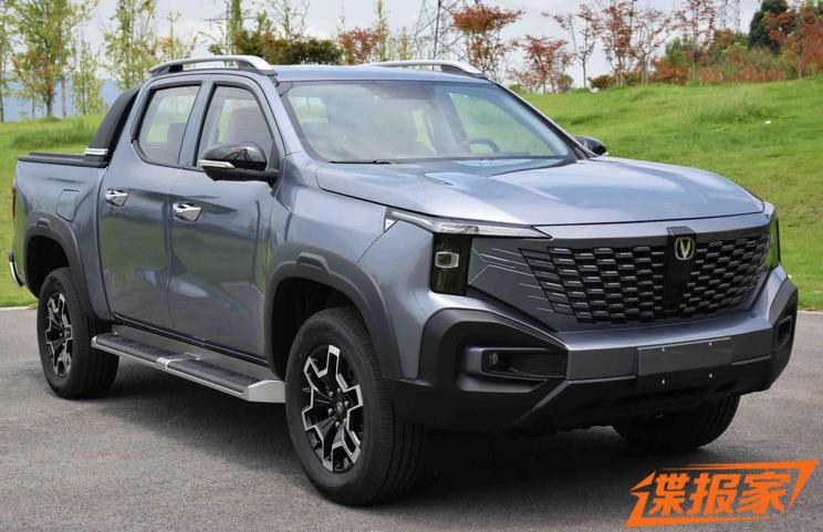 [本站 国内谍照] 在最新一期申报图中,长安旗下猎手皮卡曝光,该车全系搭载插电式增程混合动力,前脸设计甚至有长安UNI系列的味道。此外,该车拥有两驱版和四驱版可选。