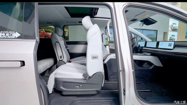 在车内,上汽大通MAXUS G70使用流行的悬浮式三联屏+8155芯片组合,车内座椅提供6座(2-1-3)和7座(2-2-3)可选,同时该车还提供三区冷暖自动空调。