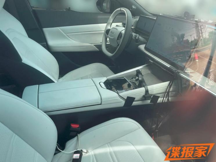 参考此前曝光的内饰谍照,该车的内饰采用了白色和灰色的搭配,整体看上去较为简洁大气。双辐式的方向盘采用了平底设计,右下角还有一个小按钮,推测是用来启动运动模式的按钮。该车配备了全液晶仪表盘和超大尺寸的中控屏幕,科技感完全不输造车新势力。该车采用了怀挡设计,而在中控台下部留出了较为宽敞的储物空间。
