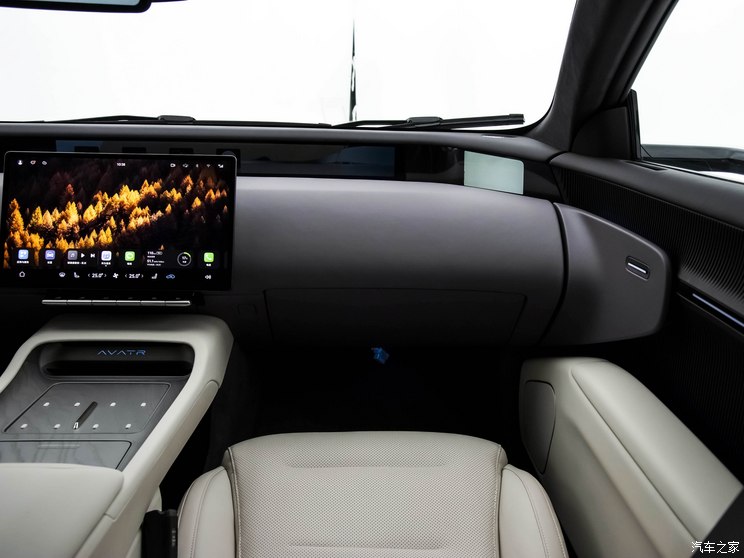 针对内饰来看,阿维塔12采用Gentle Tech极简设计概念,减少了物理按钮,只保留实用度高的必备按键。座舱内35.4英寸4K全景宽屏设计,两侧为外侧流媒体后视镜的显示屏,中央显示部分驾驶信息等。中控部分则继续配备一块15.6英寸中控屏。车内还拥有27个扬声器,64色环拥式智能氛围灯,以及3种个性化香氛方案。中控台设置自适应升降无线充电岛和承托杯架,每个车门单独设置了翻盖式的隐藏储物空间,在确保储物能力的同时保持座舱视觉一致性和私密性。