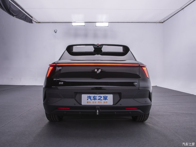 极越01的车尾部造型较为饱满,“一字眉”贯穿式尾灯与前脸相互呼应。尾灯上方载分段式扰流板和自动升降尾翼,该尾翼可根据不同驾驶状态,由AI自适应调节。自动模式下,当车速达到95km/h以上时,车辆会自动升起尾翼以降低风阻;当车速降至65km/h以下时,尾翼自动收回。