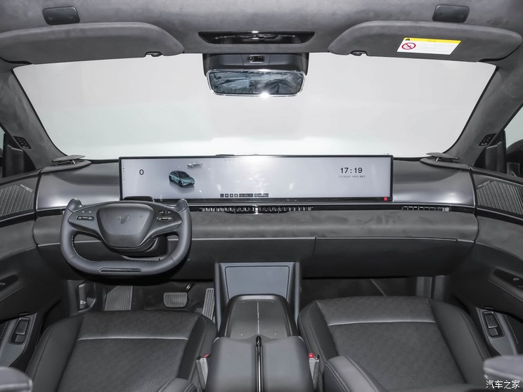 首先,沉浸式的内饰空间营造出了极为浓厚的科技感。新车内饰配色为宇环黑、宇烁白、宇幻紫这三种。搭载35.6英寸6K超清一体中控屏,屏幕像素密度达到185 PPI,可全屏展示,也可分成双屏和三屏独立显示,分区内可以自由组合与滑动流转。搭配U型的半幅式方向盘,且基本取消了左右拨杆、中控实体按键等设置,让你一眼就能看出这款车与传统汽车之间的差别。