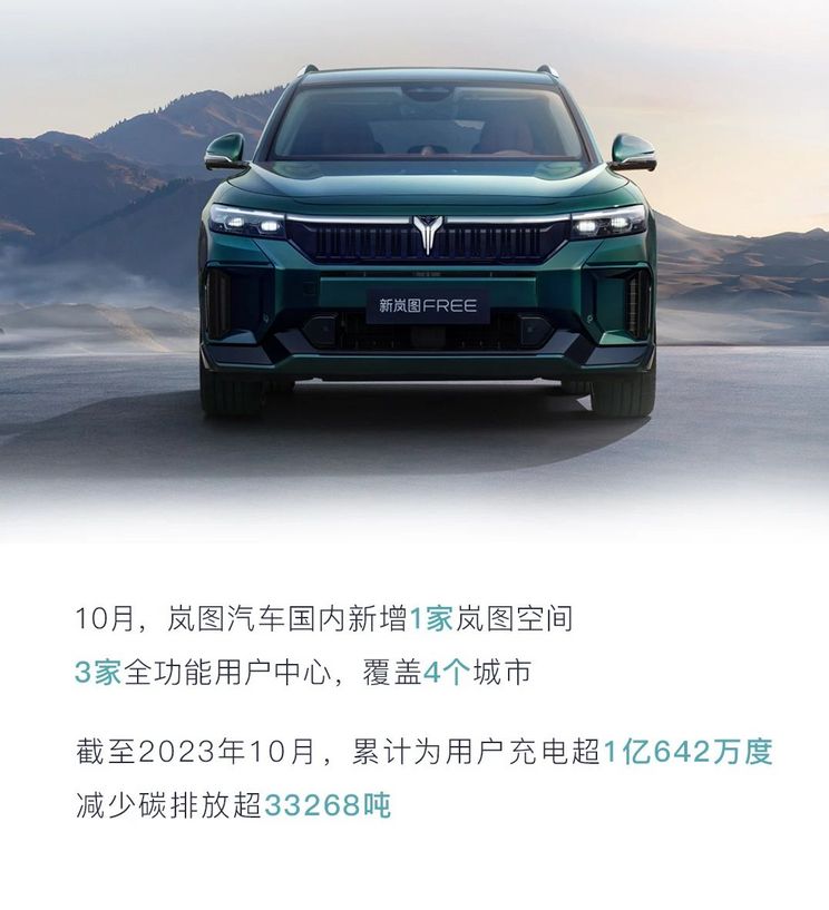 10月,岚图汽车国内新增1家岚图空间,3家全功能用户中心,覆盖4个城市。同时,岚图在国内已开设岚图空间及用户中心合计271家,在海外开设岚图空间14家,销售服务网络覆盖全球108座城市。