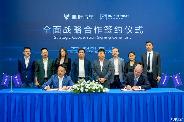 10月,哪吒汽车在2023新品发布会上宣布:2026年将全面转型成为卓越的全球高科技技术公司,重心由“制造”转向“科技服务”,实现全球市场的百万销量。在同月,哪吒汽车与法国巴黎银行(BNP Paribas)签署谅解备忘录,达成汽车金融战略性合作。根据谅解备忘录,双方合作领域将涉及个人金融、汽车保险和服务等诸多方面。