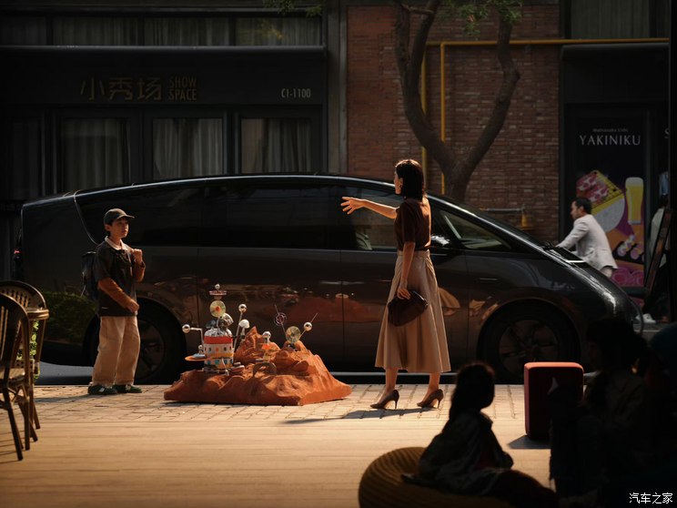 来到侧面,车身十分光洁,看不到传统车型上的腰线,同时该车前排和二排侧滑门的把手均采用隐藏式的设计,此举也是尽量降低风阻。它配备的是245/60 R18的米其林e.PRIMACY电动车专属轮胎,并搭配低风阻轮圈。此外从车顶线条来看,它还配备了大尺寸的天窗。
