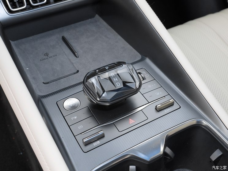 中央扶手区包含空调出风口、无线充电板和挡把,电子挡把看上去相当精致,其下部是较大的储物空间。可以注意到,整个内饰比较注重材质的铺垫,方向盘和中控台都有不错的内饰材质。座椅方面,新车配备NAPPA真皮一体式运动座椅,前排座椅多角度可调,按摩、腿托、通风、加热等功能。此外,新车还配备了全景天幕。前后备厢都有不错的储物空间。