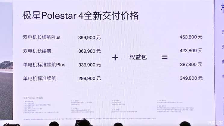 极星还将向首批极星4(全景看车)车主开放限时专属权益。其中包括三年免费道路救援、取送车、车联网服务等五大基础保障权益