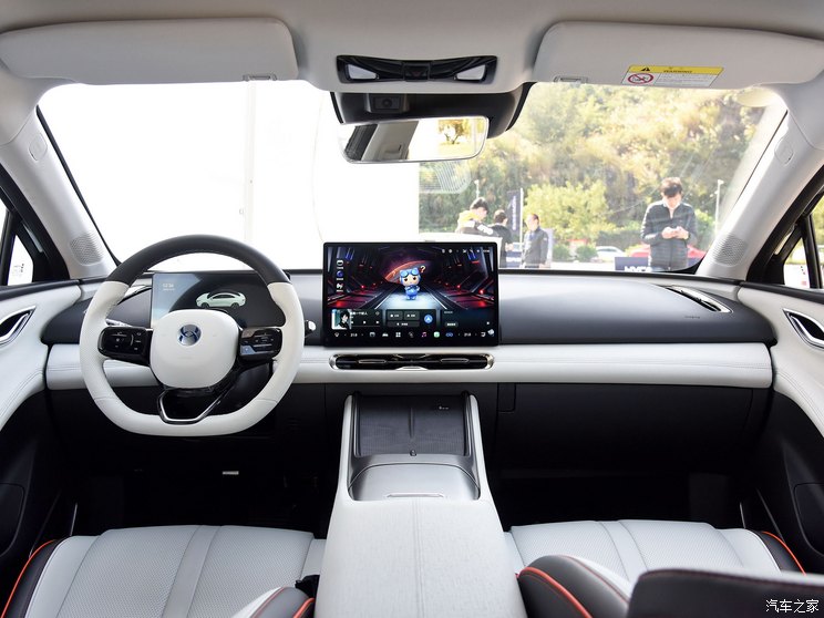 新车内饰与合创A06保持一致,中控触控屏尺寸达到14.6英寸,搭载合创全新自研车机系统HI-OS,支持视线唤醒、唇动识别以及手势控制。另外还拥有10.25英寸液晶仪表,11扬声器等。