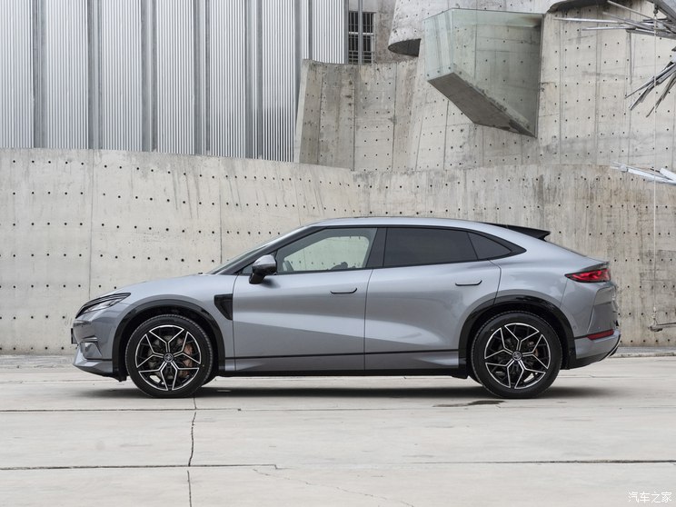 车身侧面拥有低趴的车身姿态,下溜式的车顶线条让它的车尾部分看上去十分紧凑。车身侧面多条腰线勾勒,增强整车的力量感。尾灯采用流光瑞结设计,还会配备可升降后扰流板。宋L整车尺寸为4840/1950/1560mm,轴距为2930mm。这个尺寸大于同样名为“宋”的宋PLUS和宋Pro,与唐差不多。