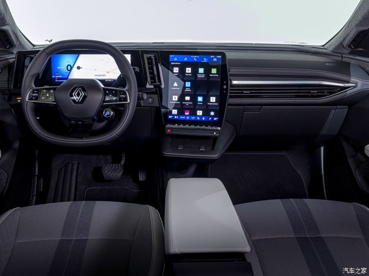 内饰方面,可以先参考雷诺风景E-Tech的设计。该车配备12英寸中控屏,向驾驶员侧倾斜,并与12.3英寸全液晶仪表整合在一起。屏幕下方保留了一些常用功能的物理按键,并配备了储物格。方向盘采用双辐式设计,有着不错的运动感。此外,新车还配备全景天幕,透光度拥有4个挡位可调。