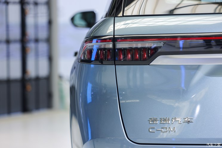 车辆尾部,同样是瑞虎9相似的贯穿式尾灯设计,中央包含奇瑞的LOGO,整个尾灯看上去相当精致,整个车尾看上去有较宽的横向视觉。