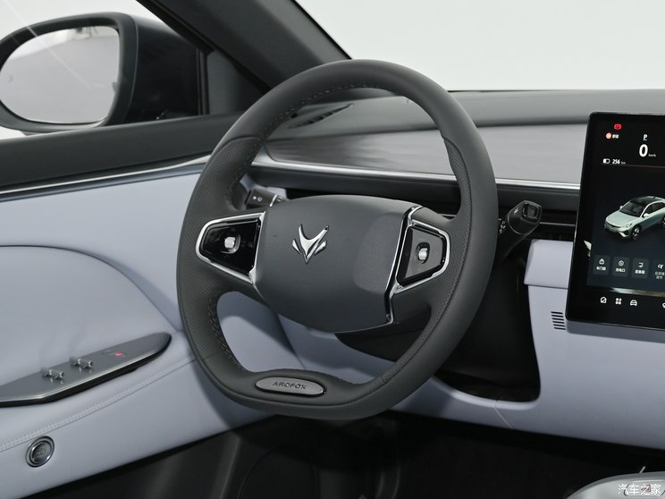 进入车内,想必车辆的设计已经无需做过多介绍,正是如今市场非常流行的极简式风格,中控大屏占据C位,内部的车机界面分为左右两块区域,显示效果比较直观。此外,新车还配备了一款双辐式多功能方向盘,并融入了银色、亮黑色材质进行点缀。前排中间扶手处采用的是比较独特的Y字形设计,似乎可以提升前排中间位置的空间利用率。
