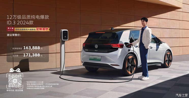 [本站 新车上市] 1月1日,我们从上汽大众官网处了解到,2024款ID.3正式上市,新车共推出两款配置车型,售价分别为16.3888万元和17.1388万元。同时,新车将提供四款外观配色以及两款内饰配色,分别为极光绿、离子灰、峡湾蓝、星耀白;皎月金星以及暗黑磁场。值得一提的是,官方还针对订车用户提供5重必享权益以及3项权益随心换,具体如下: