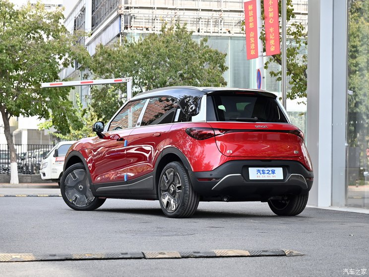 smart精灵#1定位一款小型纯电动SUV。回顾外观,该车采用了三角形的大灯设计,中间用贯穿式LED灯组连接,提升车头视觉宽度。此外,新车的前包围使用了尺寸较大的通风孔,两侧还配有较为动感的导流槽设计。