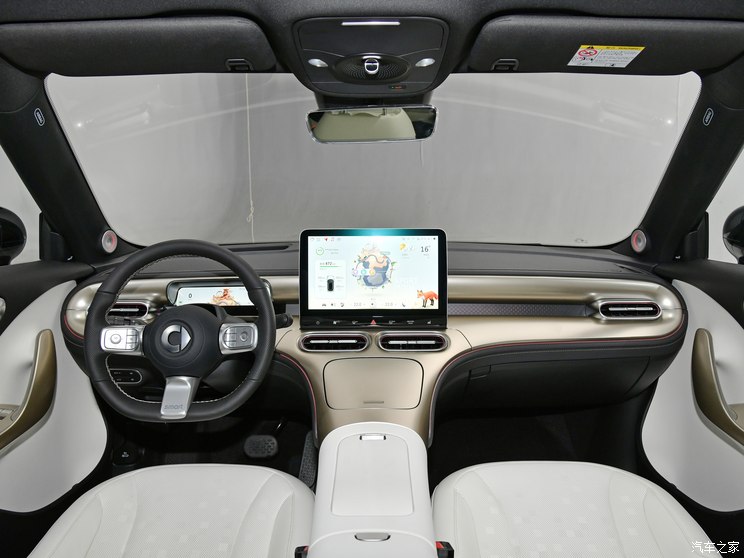 来看内饰,新车采用了标准的电动车设计,尺寸宽大的悬浮式中控屏颇为吸睛,配合长条形的全液晶仪表看起来科技感较强。此外,中控台大面积采用银色设计,整体档次感相当出众,平底三辐方向盘给内饰增添了几分运动氛围。