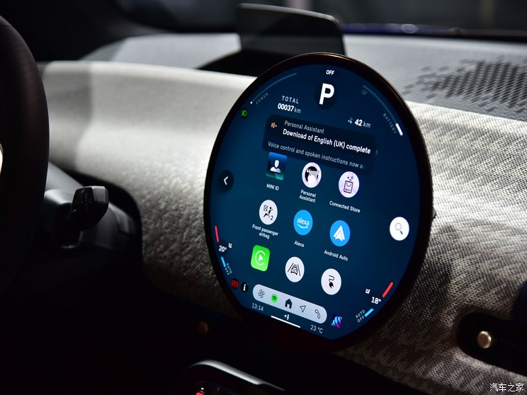 新车内饰采用极简的设计风格,中央多媒体屏幕采用直径24厘米的窄边OLED,并内置MINI OS 9操作系统,界面年轻化程度得到极大的提升,也融入了数字萌宠。此外新车取消了仪表盘设计,采用HUD显示行车信息。