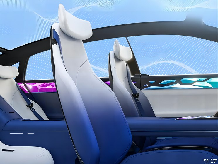 内饰以深邃的色彩搭配,与质地柔软的内饰材质营造出“先进整洁感的梦幻数字座舱”。车内采用超大尺寸的悬浮曲面屏幕、精巧的半辐式方向盘,烘托出强烈的未来科技感。轻薄的座椅采用流畅舒适的造型设计,前后排四座布局采用贯穿式设计,带来通透的座舱视觉感受。