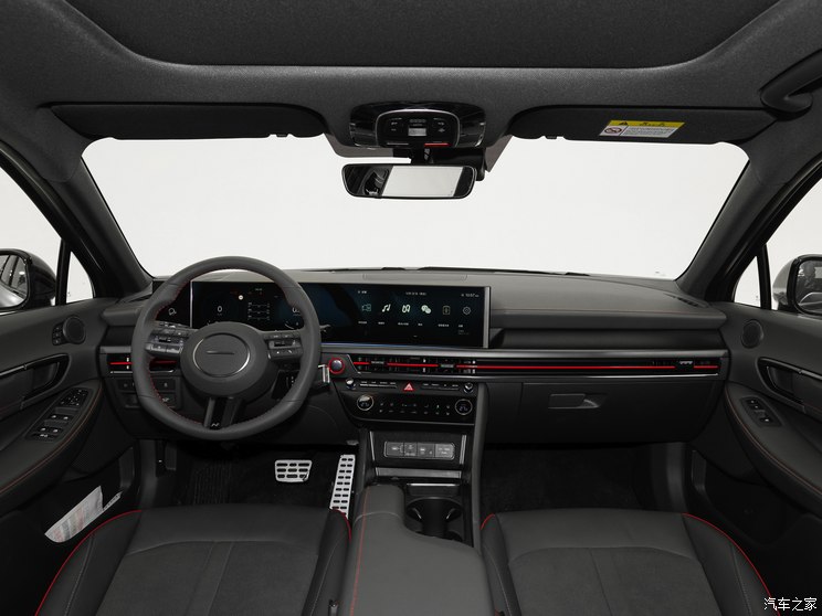 内饰方面,全新索纳塔的数字化智能座舱以驾驶者为中心布局,采用双12.3英寸曲面显示屏集成中控和仪表,换装旋转式电子怀挡、多功能摩斯密码真皮方向盘,搭配贯穿式空调出风口,提升内饰层次感和高档感。而N Line车型则进一步增加红色饰条等更能彰显运动感的元素。