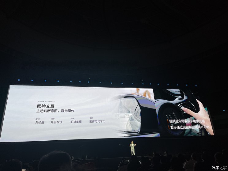 不仅如此,新款极氪001车窗按键换成了拨杆式,升级电子门把手,同时无线充电区域也采用翻毛皮进行了覆盖。值得注意的是,新款极氪001加入了5D观影模式,联动7.1.4声道环绕+5D振子座椅系统+全新一代分区调光天幕等硬件,根据电影情节中的气味、烟雾、风、雨、雪等变化,提供视觉、听觉、温觉、触觉、嗅觉五感体验。触控与语音交互之外,新款极氪001拥有一套行业独有的「眼神识别」算法――眼神交互。启动EVA,只需一个眼神,系统就能直觉操作,调节后视镜、升降车窗、关闭车门等。