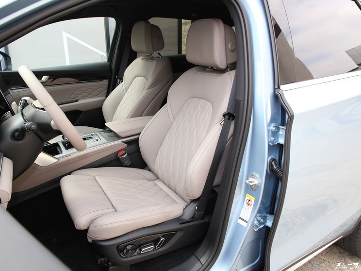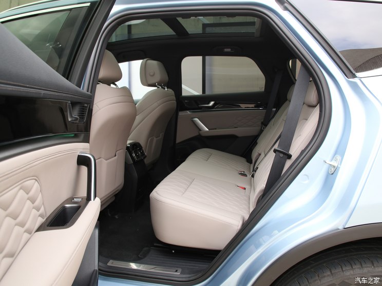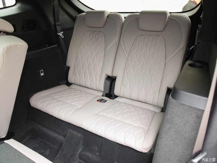 新车采用七座座椅布局,前排和第二排座椅看上去都相当厚实,只有第三排座椅稍显单薄,前排座椅拥有腿托,并有着高级的菱形纹路,后排座椅可以前后移动调节,三排座椅靠背均可完全放倒,并形成宽大的储物空间。