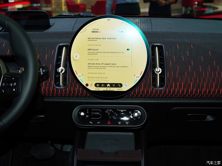 内饰方面,全新MINI JCW COUNTRYMAN简约的设计语言使座舱看起来更开阔,圆形的方向盘、中控屏与纵置的空调出风口、车门把手构建出车内最主要的几何元素。仪表板、门板和JCW运动座椅上的红黑配色方案是对MINI赛车传统的致敬,同时仪表板由可再生聚酯纤维织物面料覆盖,彰显其环保理念。