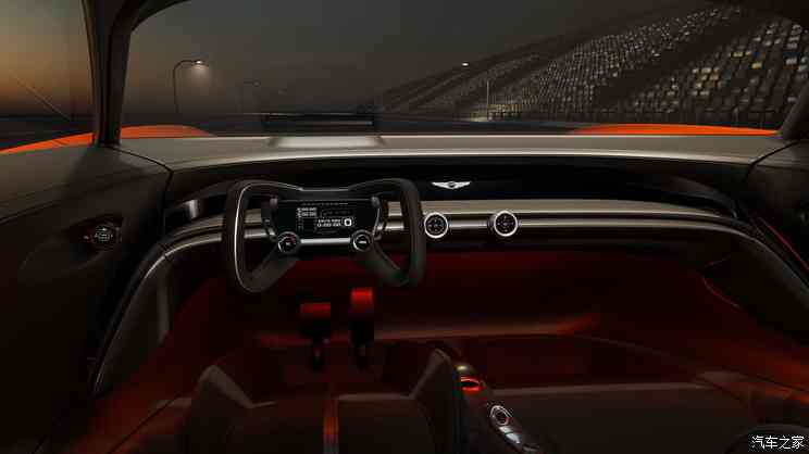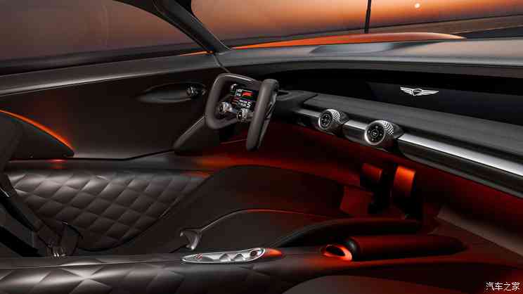 进入到车内,该概念车采用双座椅布局,整体中控台十分简洁,贯穿式中控屏镶嵌在中控台内部,同时下方配备两个旋钮进行操控。方向盘造型十分竞技,内置显示屏充当仪表盘的作用,并且配备HUD抬头显示。此外,该车在方向盘以及门板上也配备有带显示屏的旋钮设计,这或许在未来量产车当中也值得借鉴。
