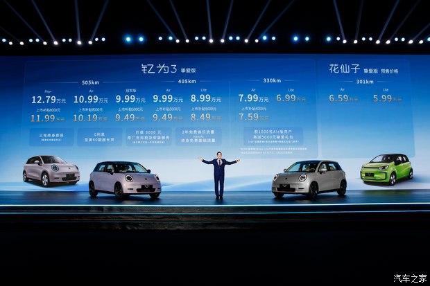 [本站 新车上市] 3月30日,江淮钇为官方正式公布了旗下纯电动小型车――钇为3挚爱版售价,新车共推出7款配置车型,售价区间为6.99-12.79万元,补贴后售价为6.99-11.99万元。与此同时,花仙子系列也宣布推出挚爱版,续航301km,并同步开启预售,预售价格为5.99万元-6.59万元。此外,即日起下订,还可尊享三电终身质保、原厂充电桩及安装服务、车机流量礼和金融贴息礼在内的多重上市权益。4月30日前通过江淮钇为App 99元下订的330km Air版前1000名用户再送价值5000元的“挚爱”豪华套装,包含360°全景影像、电动门把手等配置升级。关于新车详细售价/预售价,请见下图: