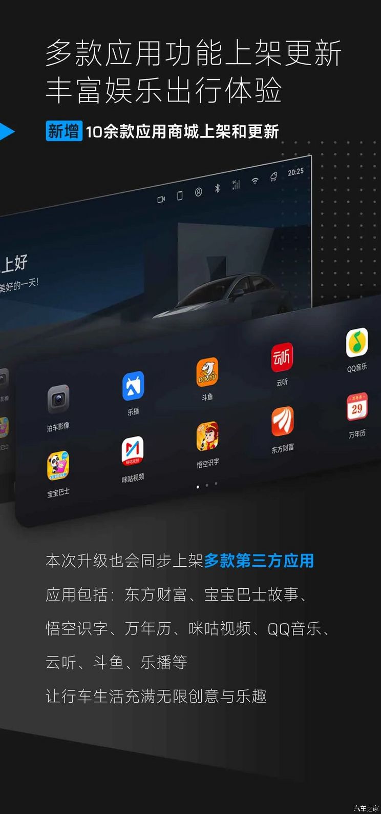 OTA内容:新增空调预约、关闭屏幕、恢复出厂设置三大功能,同时优化视觉体验以及车机系统稳定性。