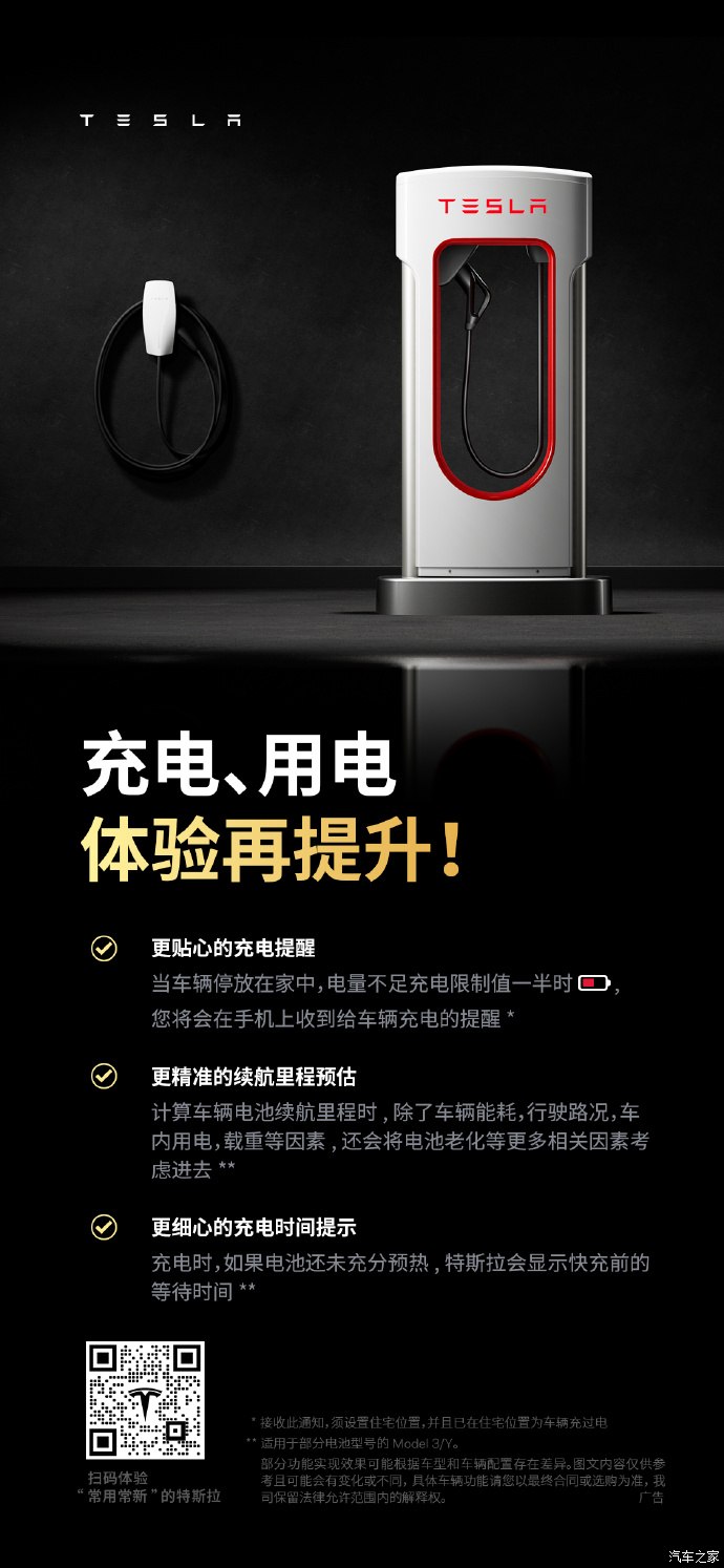 3、车辆新增在家插入电源充电提醒:现在,当您将车辆停放在家中且充电量不到充电限制值的一半时,您会在手机上收到给车辆插入电源充电的提醒。要接收此通知,您必须设置住宅位置,并且先前已在家中充过电。
