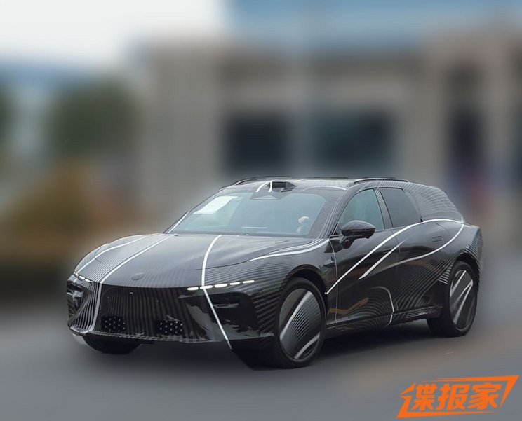 外观来看,新车覆盖着伪装材料,不过从此前发布的官方预告图可以看到,车头的造型和哪吒S保持一致,采用了分体式大灯,上方的LED日间行车灯采用了虚线造型,看起来很有辨识度。唯一的不同点在于,哪吒S猎装车车头下部的进气口表面新增了镀铬点阵装饰设计。