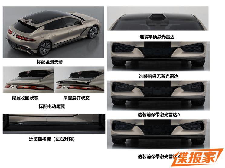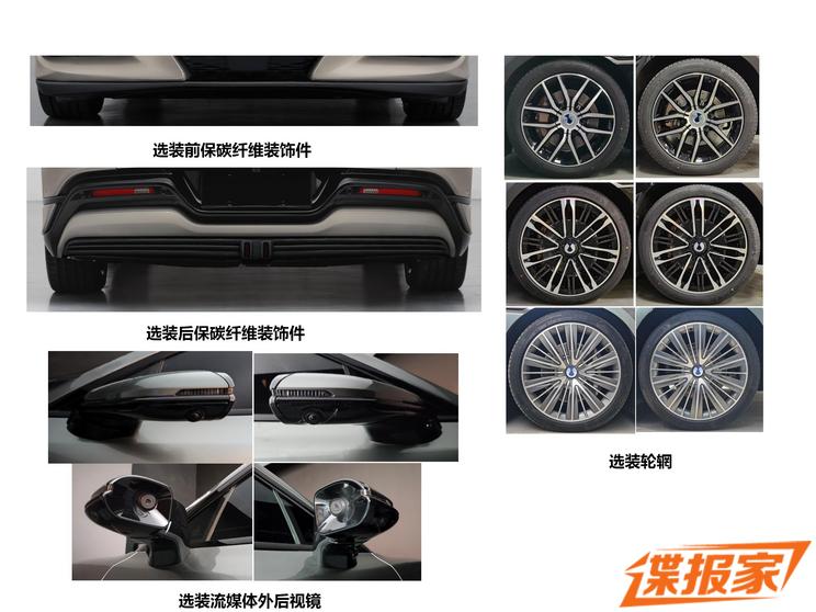 此外,新车还将提供前保险杠激光雷达、车顶激光雷达、侧裙板、流媒体外后视镜、前/后包围碳纤维装饰件等可供选装。动力方面,新车将会配备三台电机,最大功率分别为230千瓦、240千瓦、240千瓦,与之匹配的是来自济南弗迪的磷酸铁锂电池。