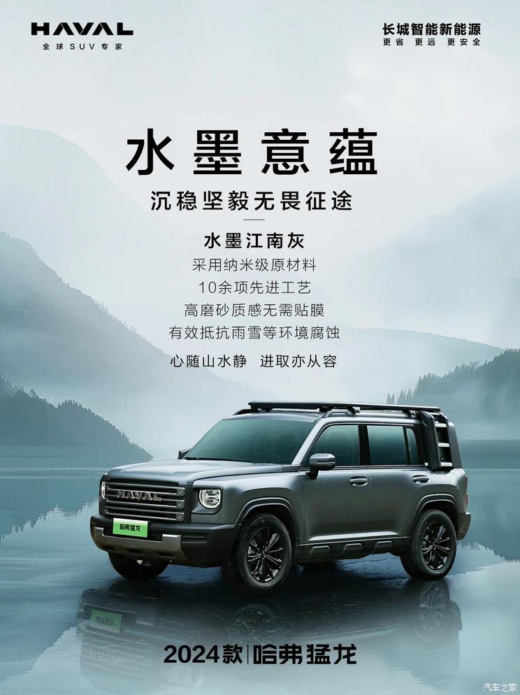 [本站 新车首发] 日前,2024款哈弗猛龙正式发布,官方宣布其将于4月23日正式上市。新车将推出两款全新车身配色,分别是风暴黄和水墨江南灰;车身高度提升21mm,带来更好的通过性;涉水深度提升至580mm;带来更低能耗、更优操控、更强续航。此外,2024款猛龙还将推出多款配置,更有带锁、带电、带T的全能版本,比如2024款猛龙Hi4 145穿越版。
