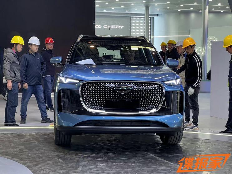 来看新车,其外观较奇瑞目前的产品有着很大的区别,前脸大尺寸格栅还保留着一定的品牌特征,其内部采用封闭式处理并加入方形装饰,看上去有着不错的品质感。两侧大灯采用了全新的设计风格,点亮后十分吸引眼球。