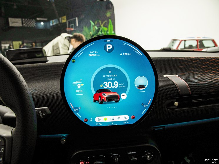 内饰方面,全新电动MINI COOPER配备了直径达240毫米的圆形OLED显示屏。相较于常规造型屏幕,圆形屏幕的硬件设备要求及软件UI/UX的适配难度更高,还集成了全新MINI操作系统9,拥有独一无二的软件显示效果,并且可通过投影技术将屏幕影像延伸至整个内饰面板,提供更沉浸式的互动体验。