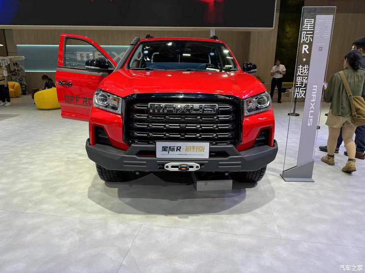 上汽大通星际系列皮卡在2023年7月正式发布,其中星际R越野版则在星际R的基础上进行了多处越野化的升级,例如加装了伊顿机械自动差速锁、涉水喉、拖车钩、胎压报警等;车身有越野拉花,尾门增加了酷黑套件,悬架升高,轮距加宽;金属越野前后保险杠,防滚架和金属侧踏;可选装大尺寸越野轮胎等。
